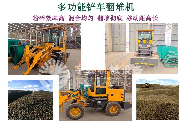 铲车翻堆机采用四轮行走设计,可前进,后退,转弯,一人驾驶,铲车翻堆机对堆体物料实施搅拌,蓬松,移堆。多功能行走翻抛机适用于各类型物料。